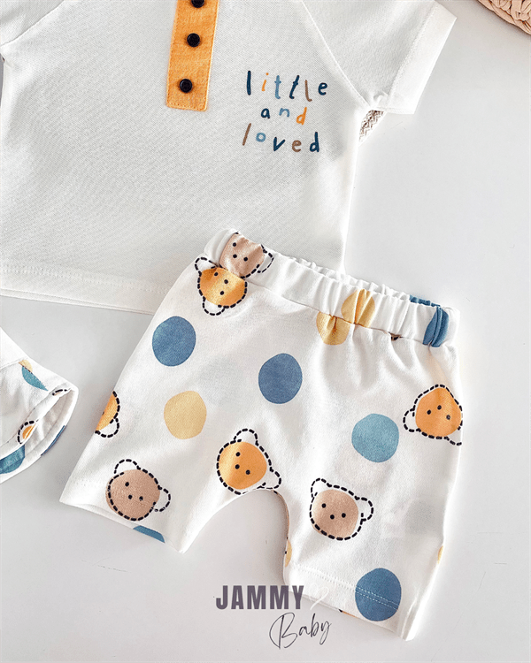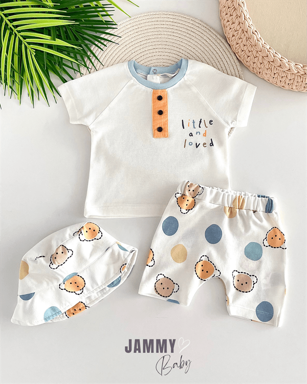 JKidslittle and loved bağlamali şapkali şortlu takim