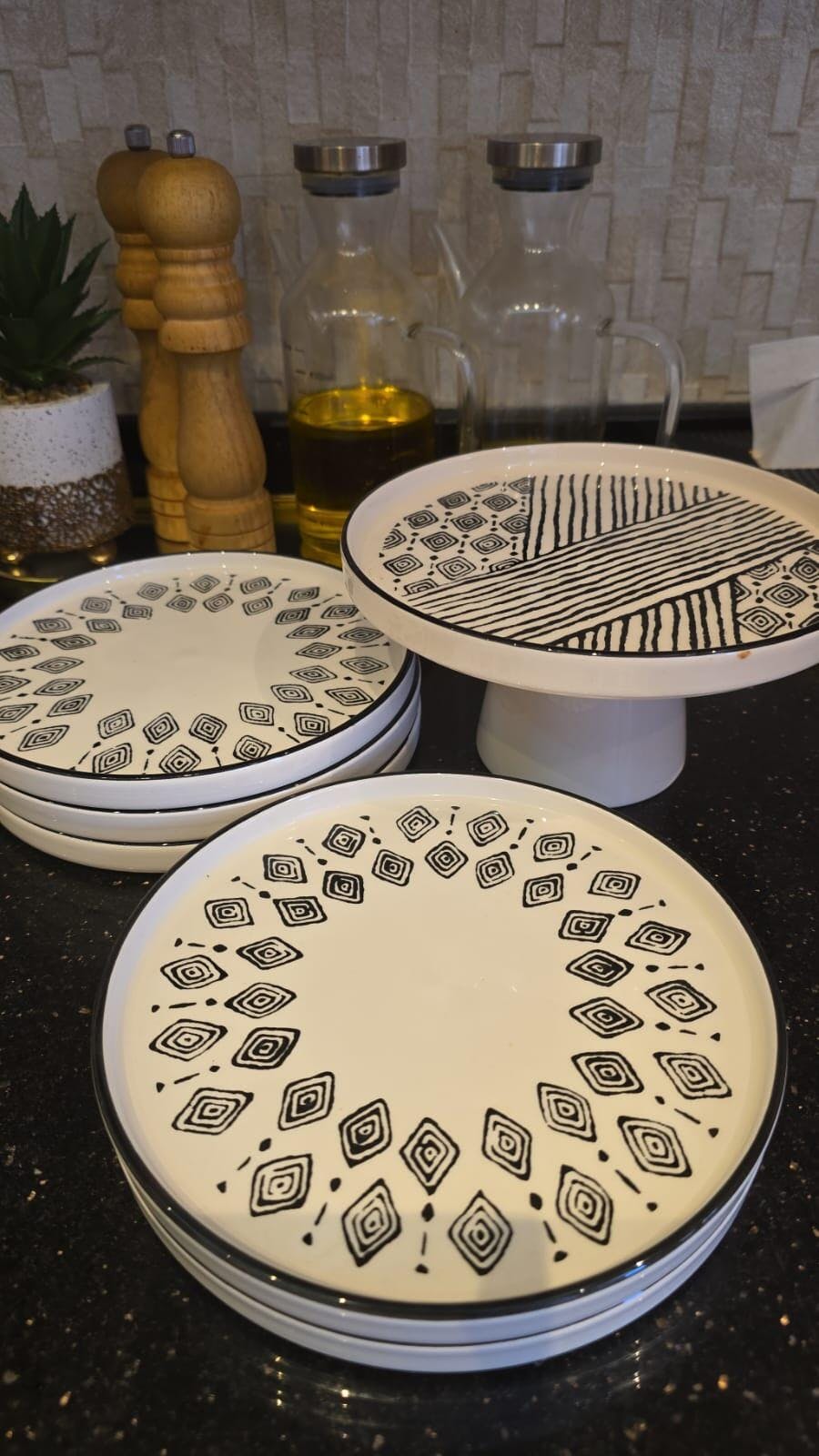 Made from First Class Natural Kütahya Ceramic. Package Content: 6 Pieces of 19 cm Stackable Plates, 4 Pieces of Jam Bowl, Olive Bowl Diameter: 10.5cm Height: 3.5 cm, 1 Piece of Presentation Rack with Foot is 19x19x11cm