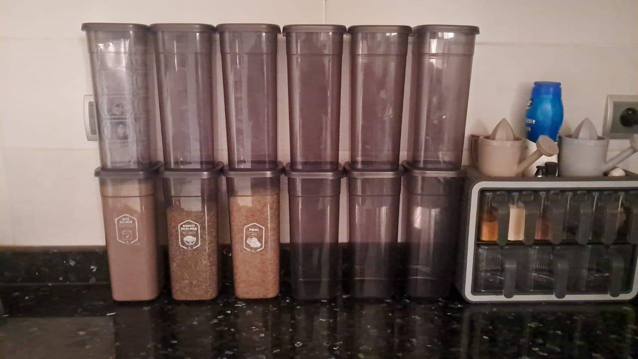 12'li Jumbo Boy Etiketli Square Kare Erzak Saklama Kabı Seti 1700 ml - Sert Kapak Büyük Kavanoz
