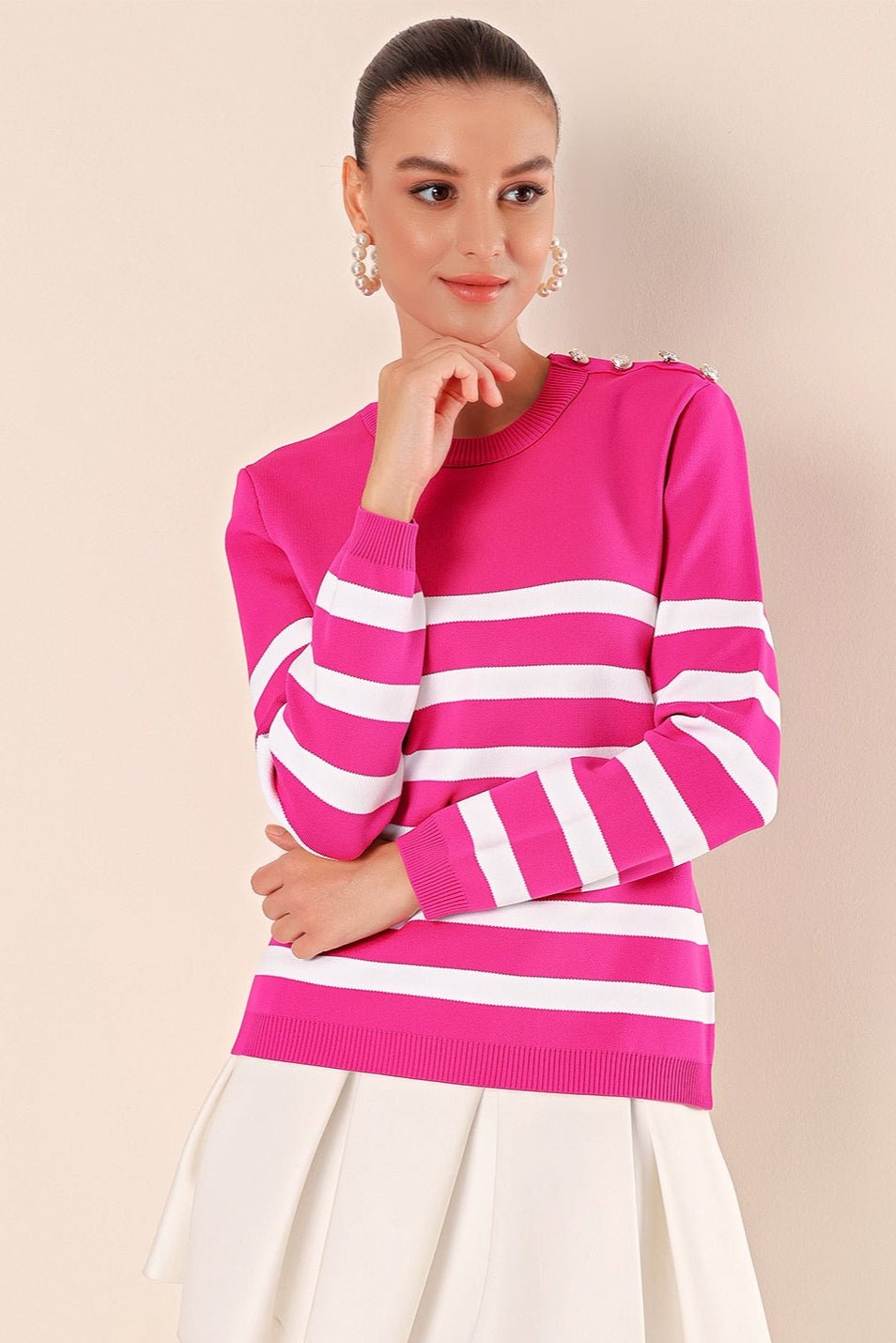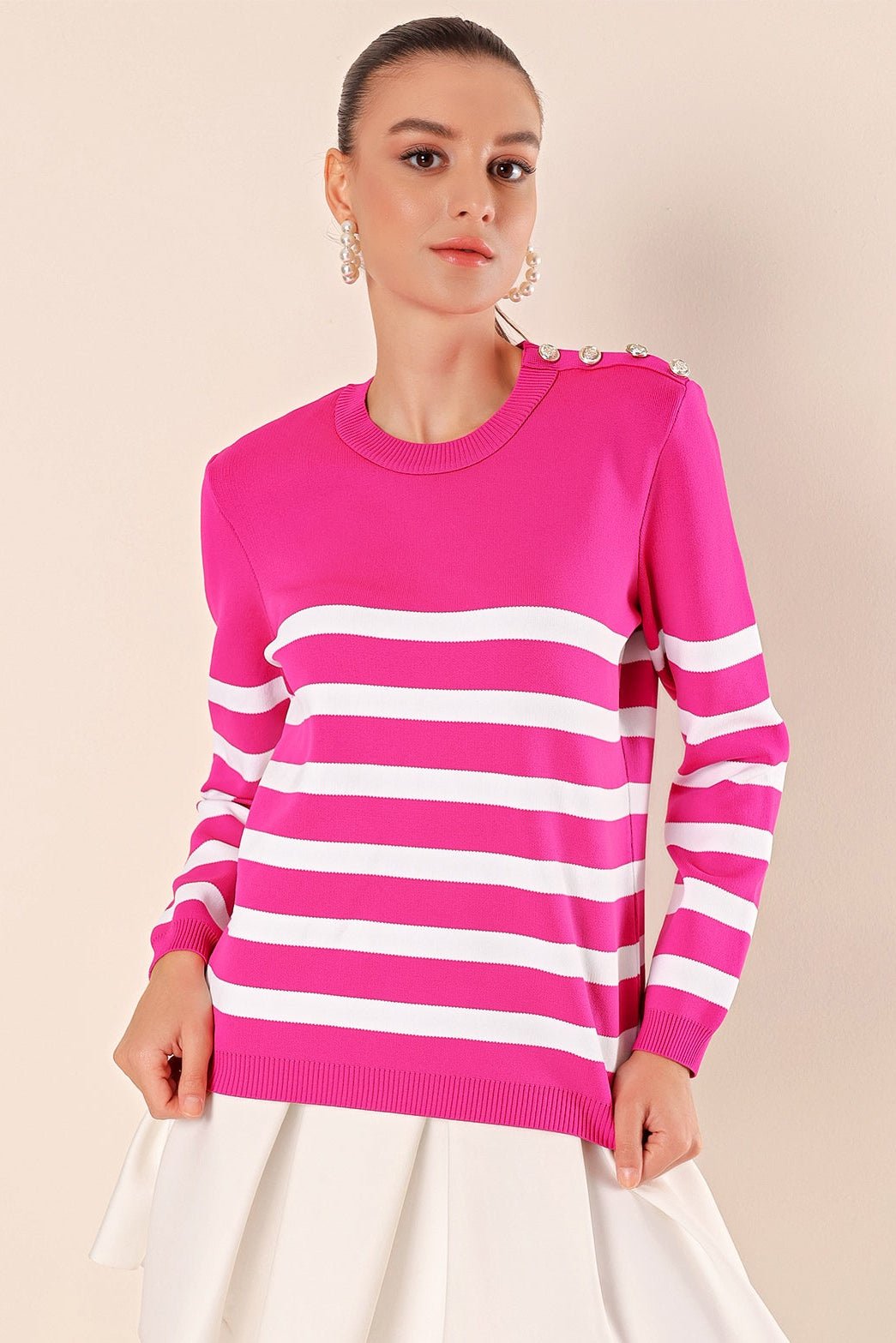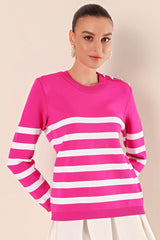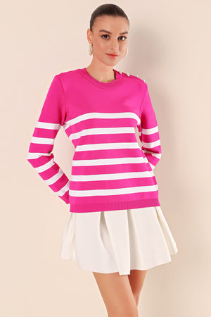 15820 düğme detay çizgili kazak
