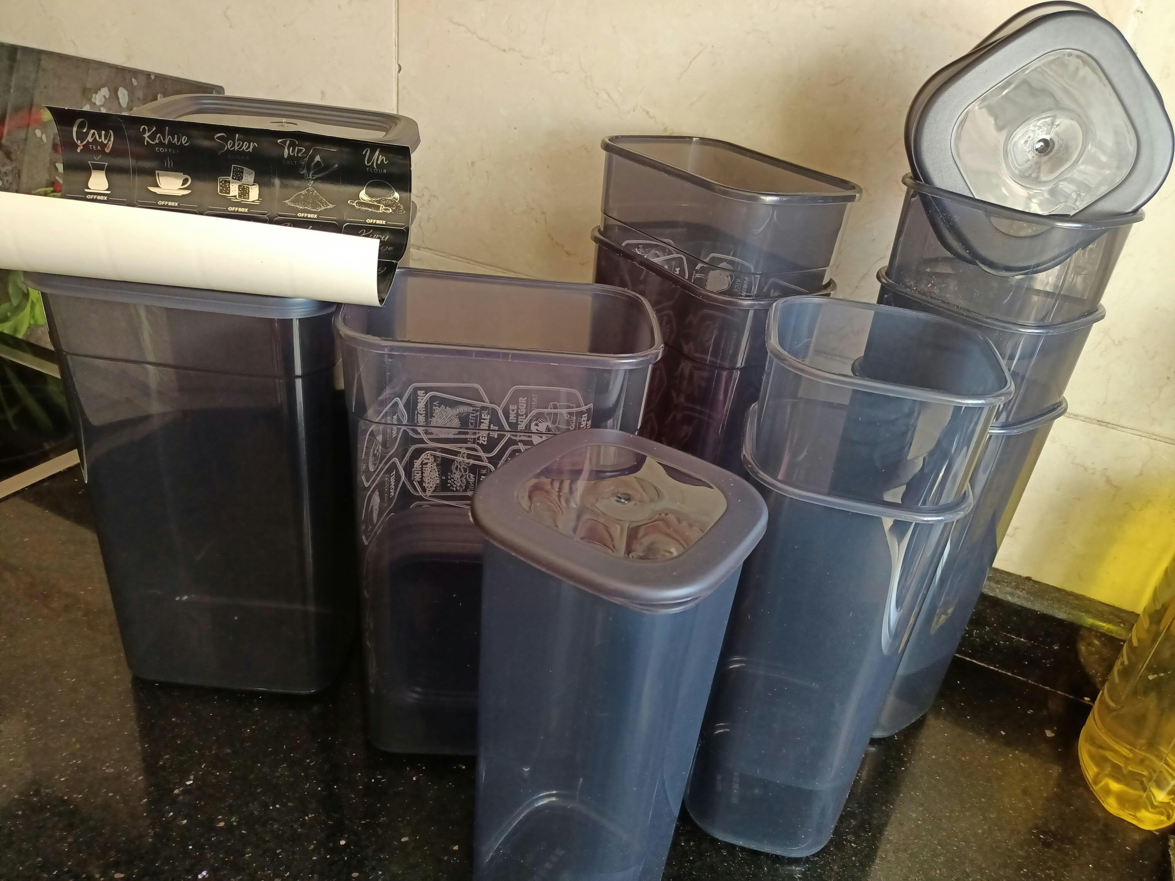 6'lı Mega Boy Etiketli Dikdörtgen Erzak Saklama Kabı Seti 3200ml Çay Şeker Saklama Kabı 3.2 Litre