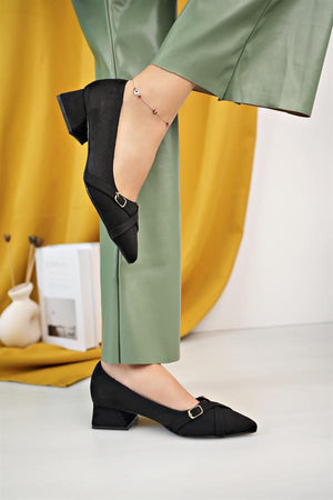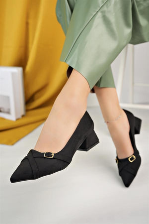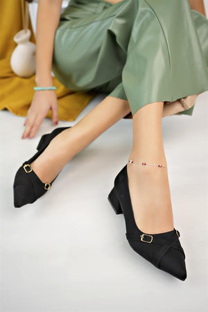 aymood siyah cilt çapraz bantli (4 cm) sivri burun topuklu ayakkabi