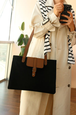 City Kanvas&Vintage Uyumlu Siyah Kol Çantası