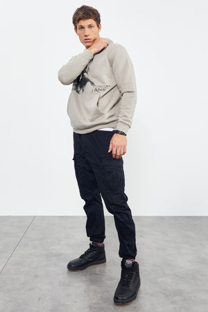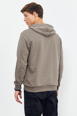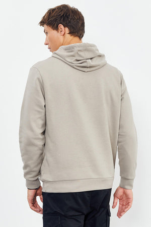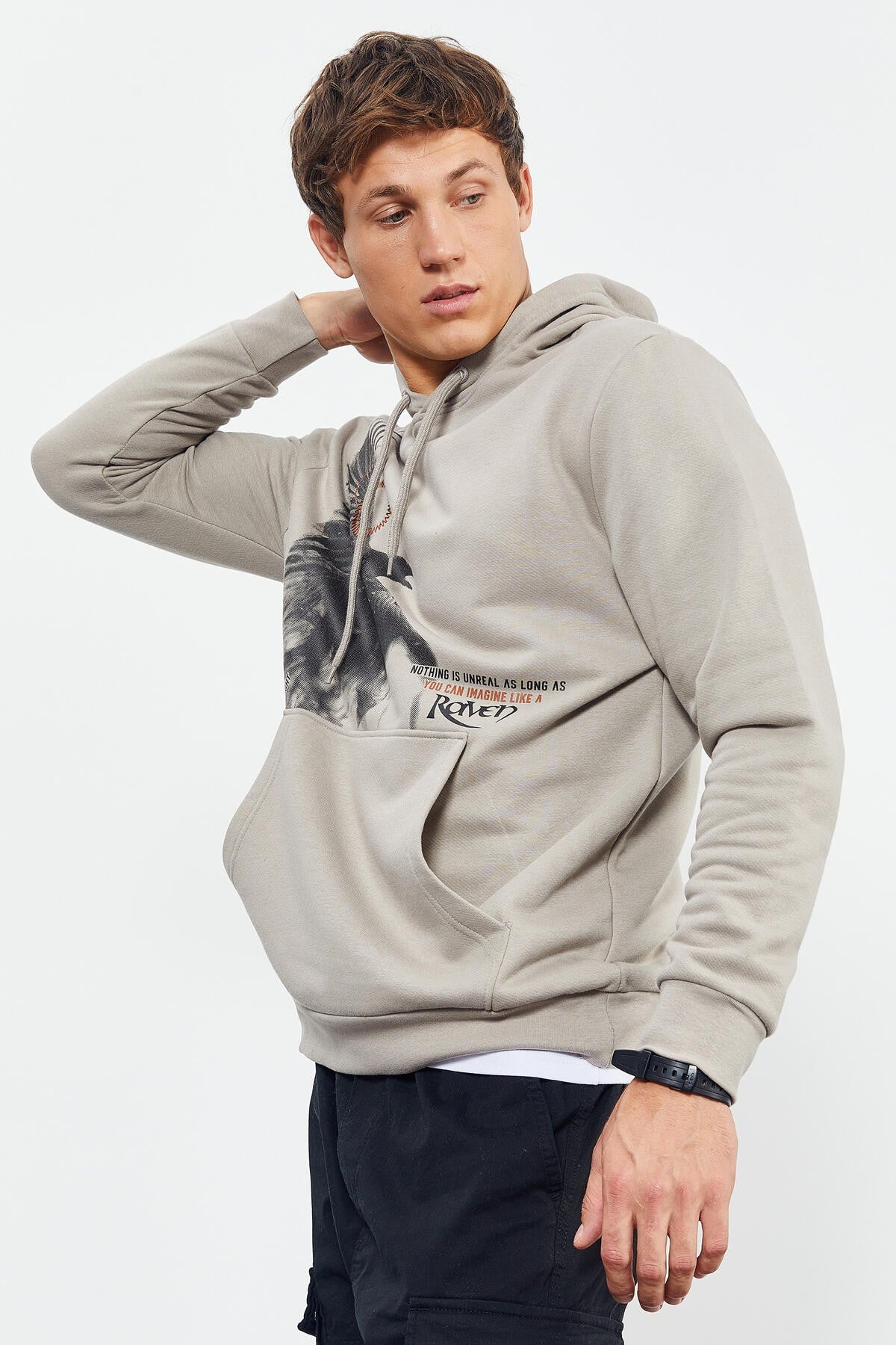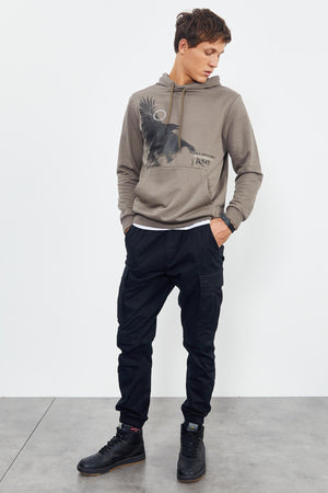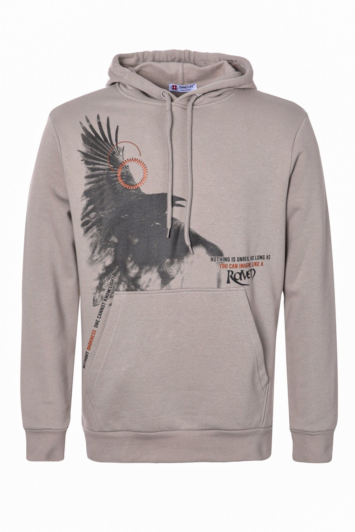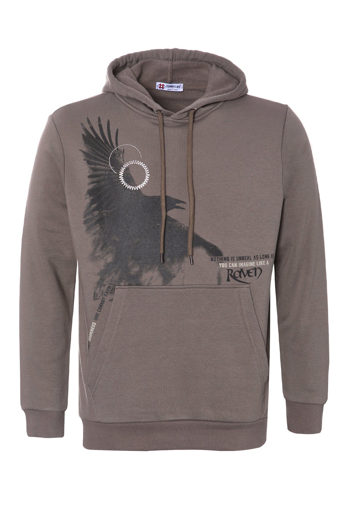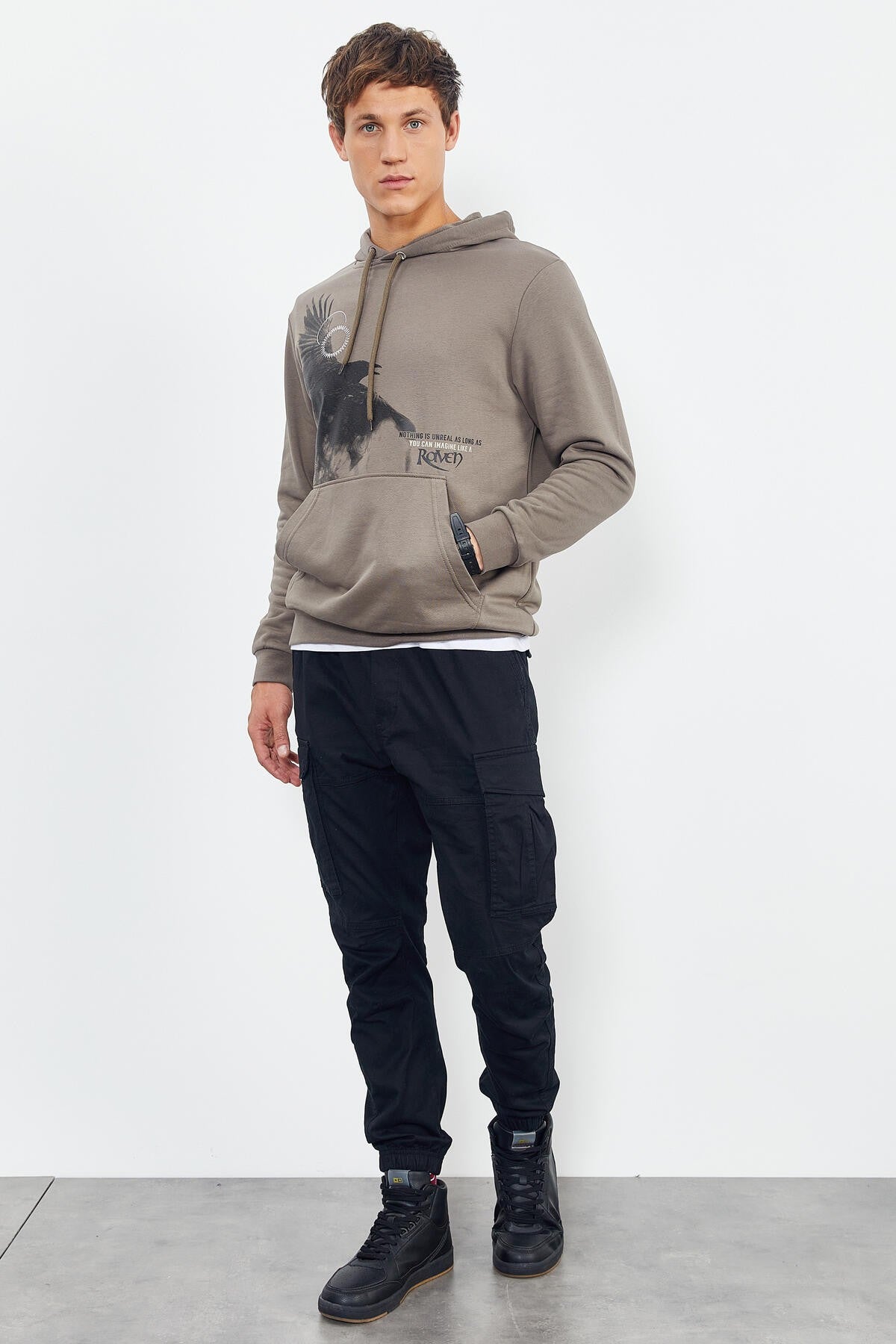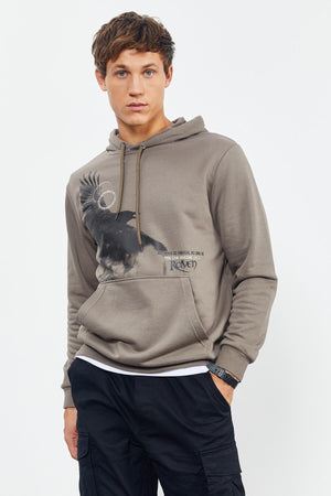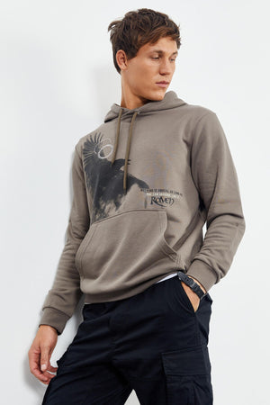 kuzgun baskili kapüşonlu kanguru cepli rahat form erkek sweatshirt - 88014