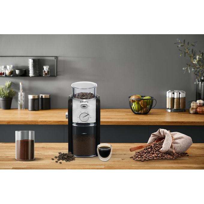 Broyeur à café d'une puissance de 100 watts avec 17 niveaux de broyage pour un résultat d'une grande précision.
