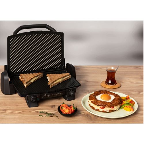 Avec une puissance de 1800 watts, réussissez vos viandes, poissons, légumes,... et paninis comme un chef ! Les plaques antiadhésives ainsi que la surface de cuisson vous permettront de réaliser toutes vos envies