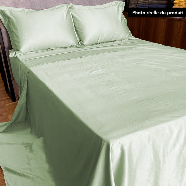 Offrez-vous un confort hôtelier à la maison avec cette élégante parure de lit 4 pièces en coton satiné, conçue dans un tissu respirant de 300 fils pour une douceur exceptionnelle et une grande durabilité.