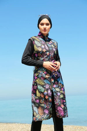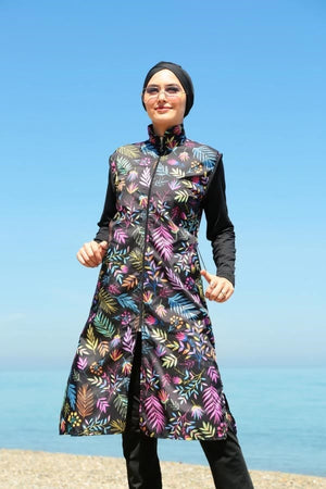 Starinci Renkli Yapraklar Tam Kapalı Tesettür Mayo
